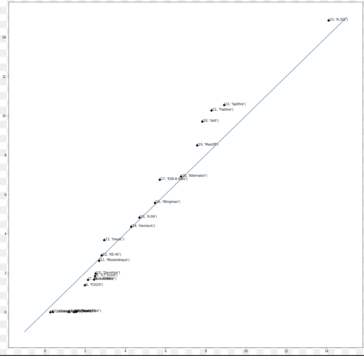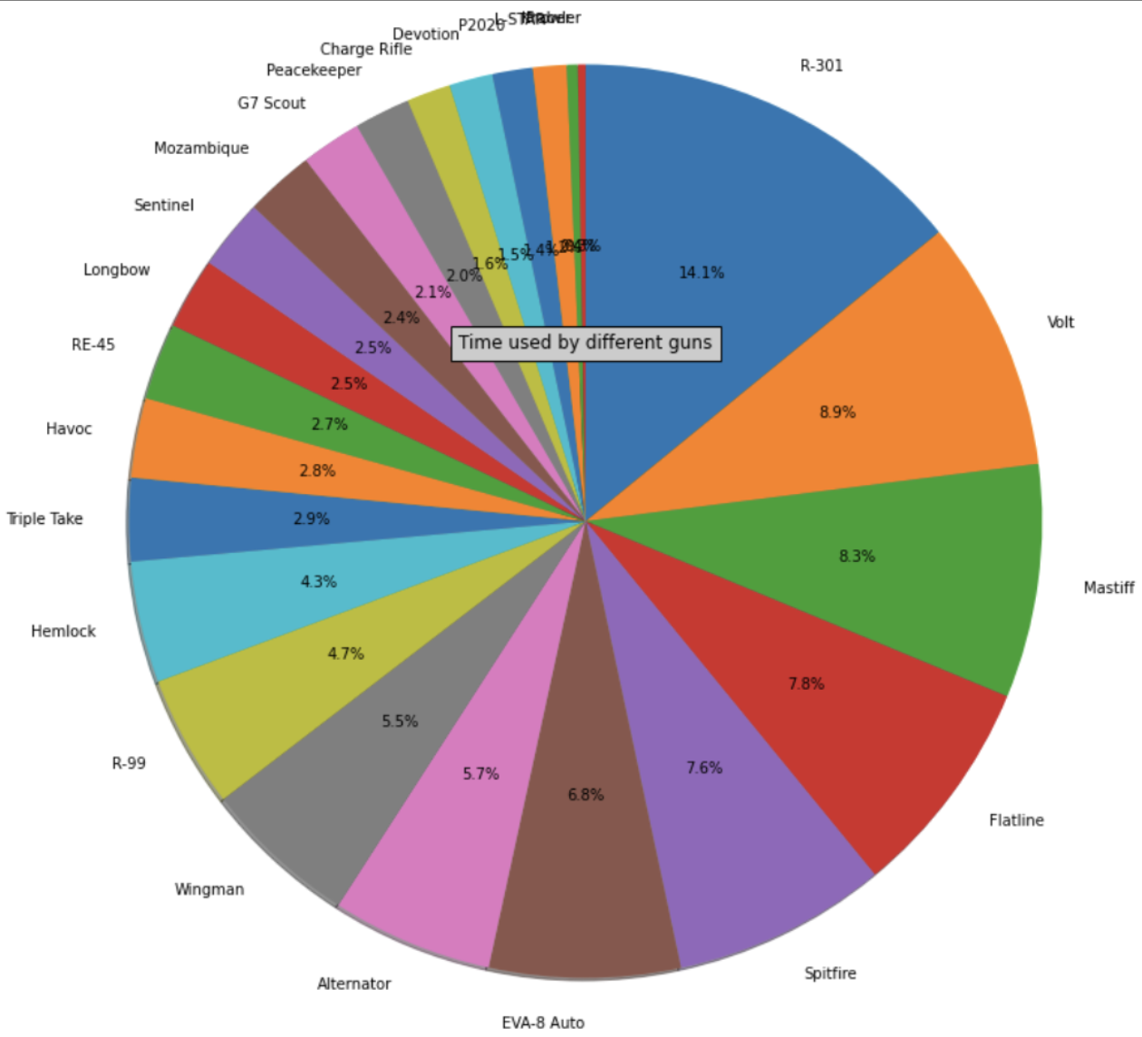Apex Legends is an online multiplayer battle royale game featuring squads of three players using pre-made characters with distinctive abilities, called “Legends”. The winner is the last team standing as surrounding zones close around them. One of the goals of our project was to find how players move throughout the map. This means looking at how players loot, and how they move across areas. This also means looking at where the most congested areas of the map are. Another goal of the project was to find which weapons are overrated or underrated.